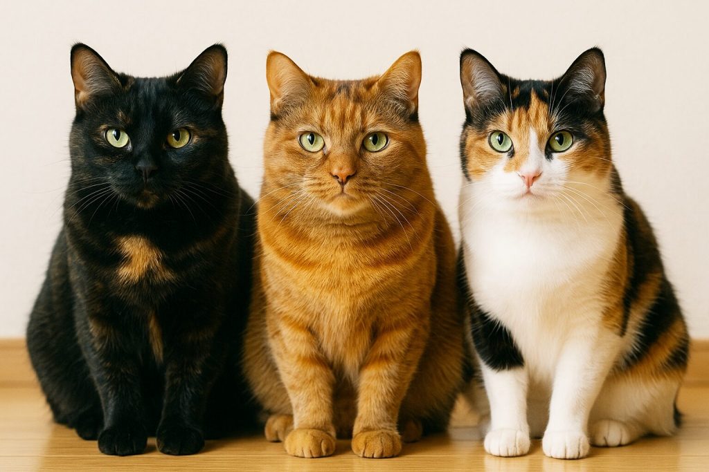 猫の性別はXY(オス)またはXX(メス)で決まりますが、X染色体が2本ないと黒と赤の両方の色を持つことができません。